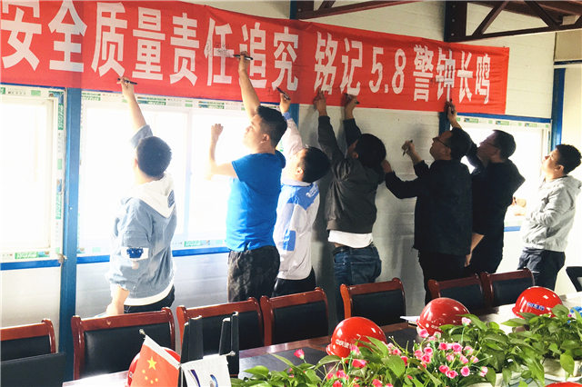 5月8日,中慶建設集團22個地區34個在建項目,在各項目駐地同步開展“安全在我心中,質量在我手中”5·8安全質量警示日活動,項目管理人員及農民工全員參加活動。